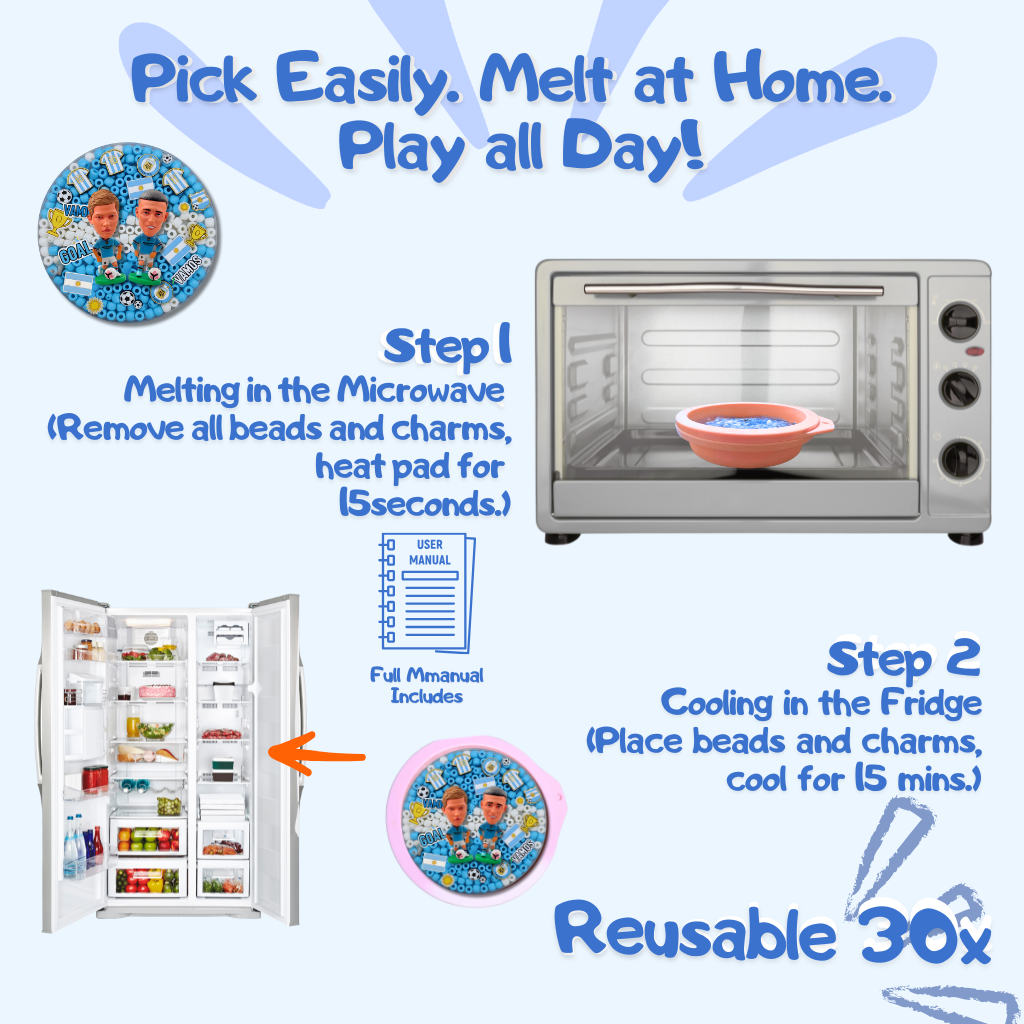 Melt in the microwave (15 seconds), reshape in the mold, cool in the fridge — ready to use again and again.