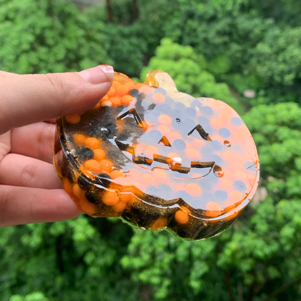 - Shape: Pour the softened pad into the mold and add beads & decorations.