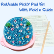 - Shape: Pour the softened pad into the mold and add beads & decorations.